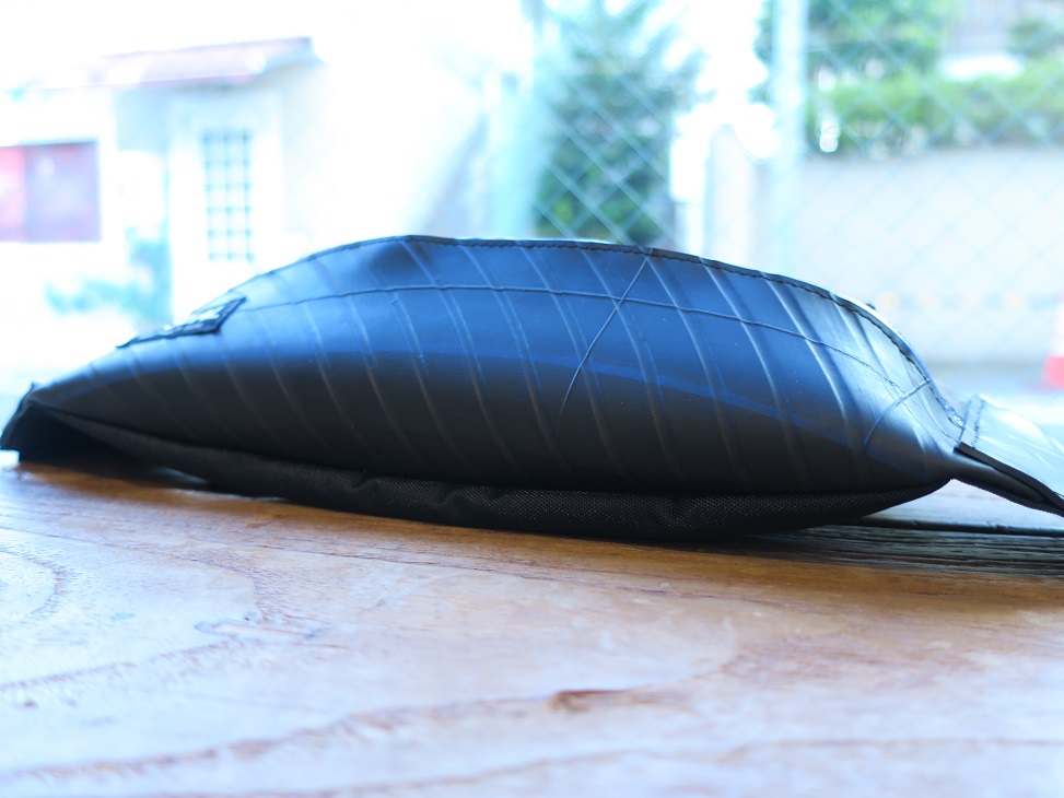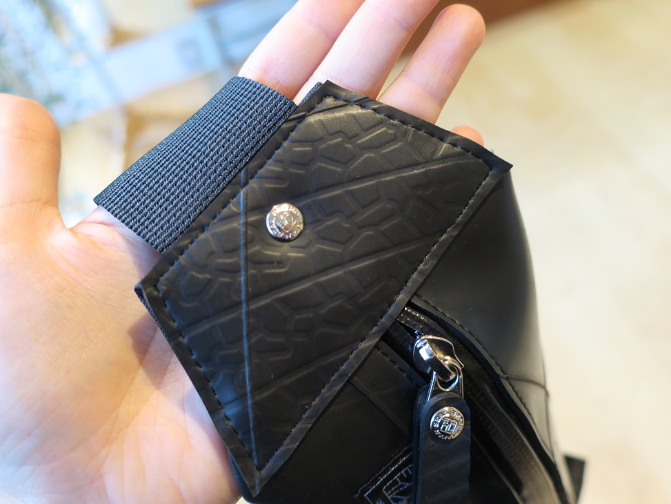 薄型で雨にも強く人気が高いこちらのボディバッグ。
