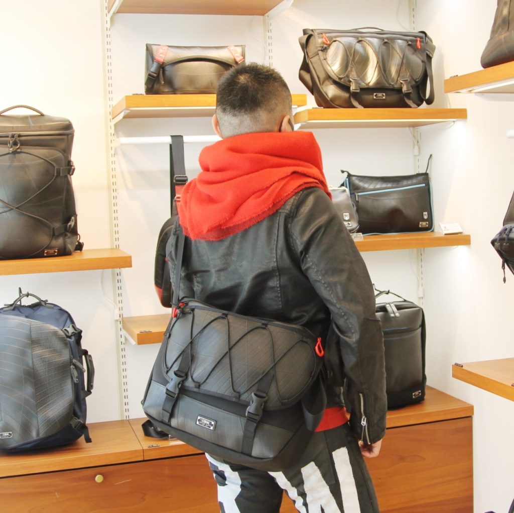 MESSENGER BAG AMBIDEXTROUSはストレッチコードをブラックにして