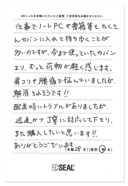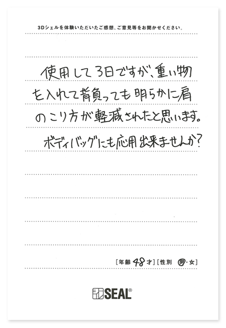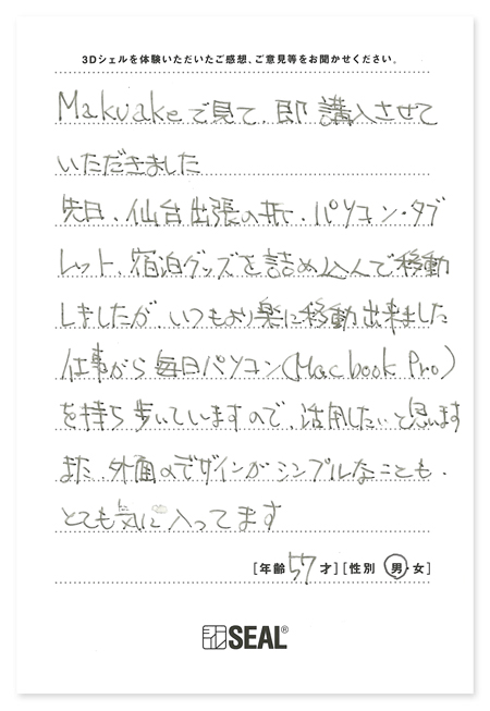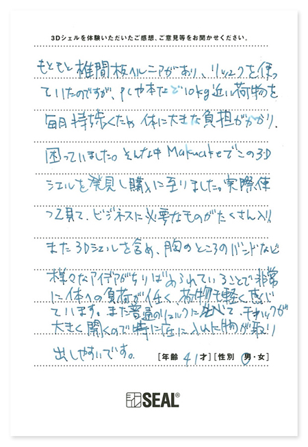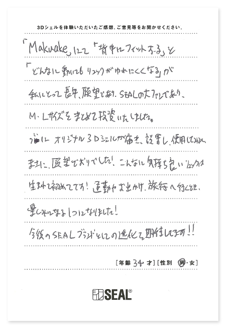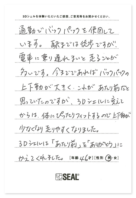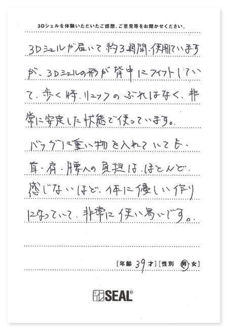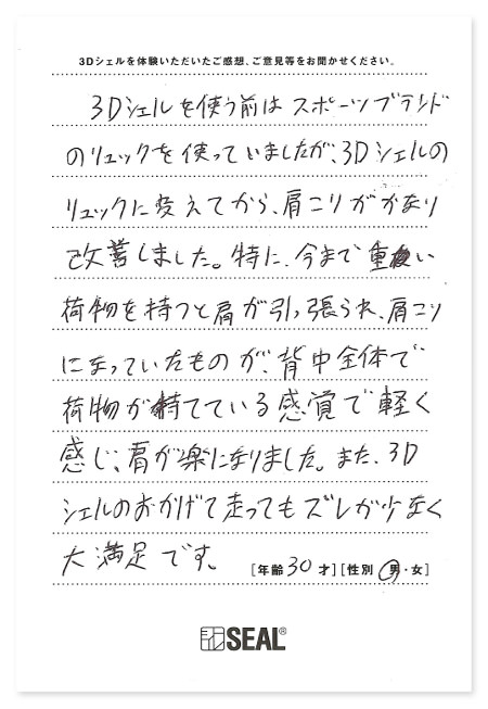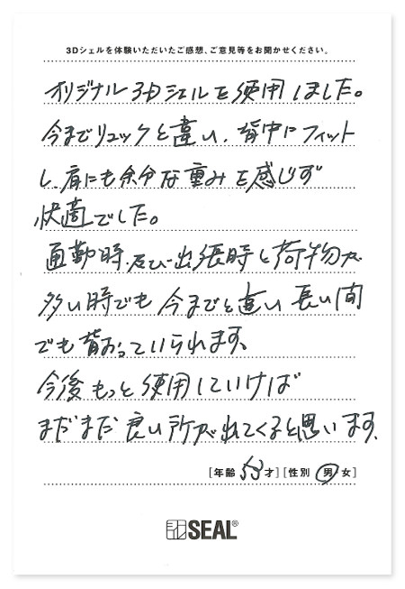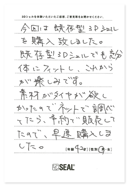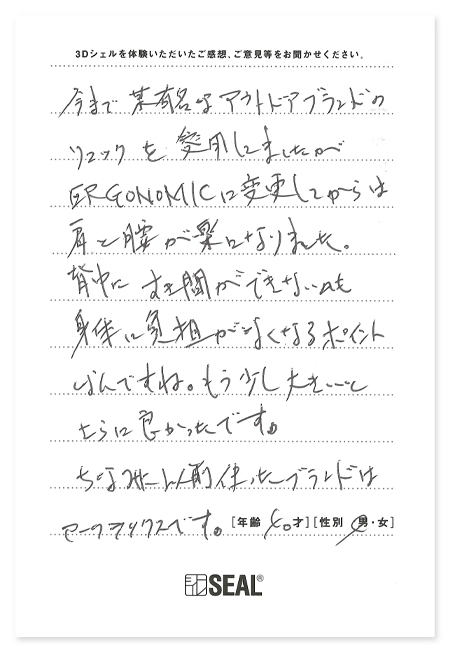 「SEAL ERGONOMIC 3D 」愛用者様の声