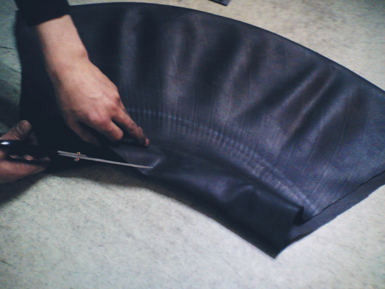 そして、今まで考えていた素材としての条件をすべてクリアしたタイヤチューブを使って