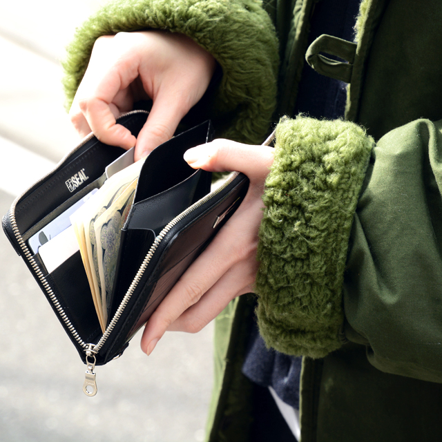 L字のファスナーが特徴的なこちらのお財布は先ほどのスマートウォレットに比べ薄型なデザインが魅力です。