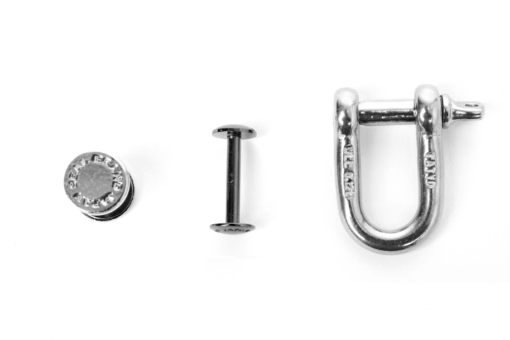 ネジ式の取付パーツやシャックル、キーホルダー等