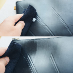 少量のグロスオイルを使って、タイヤチューブ部分を乾いたタオルで磨いてください。