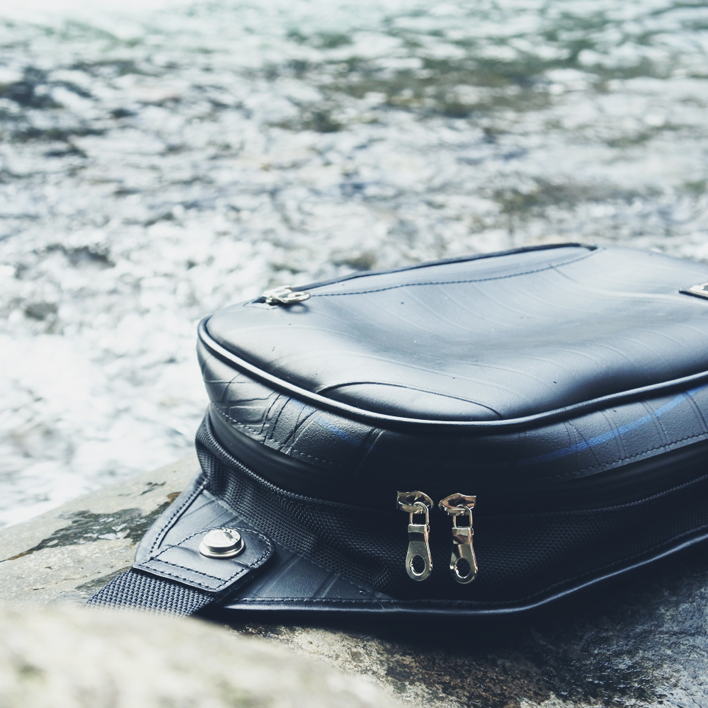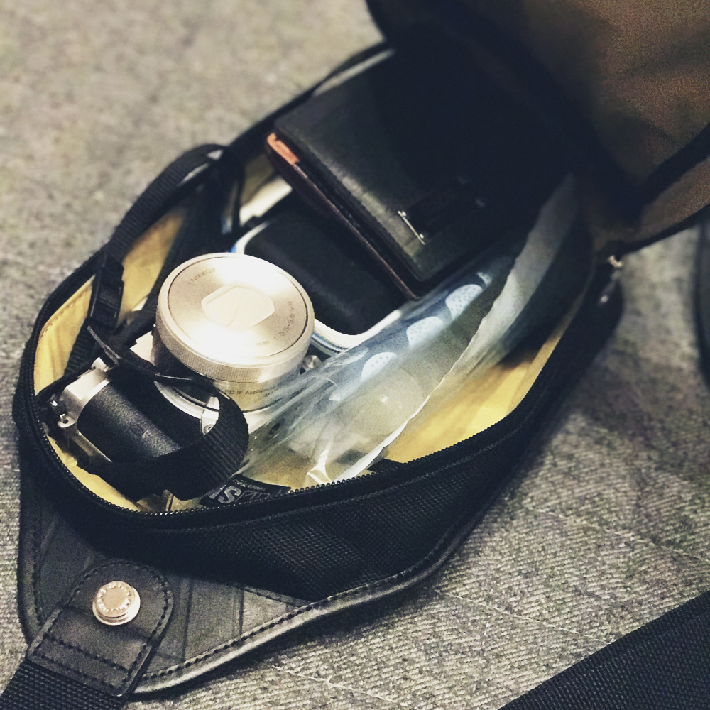 海に行くつもりだったので、全体に止水ファスナーを使っているボディバッグは安心。