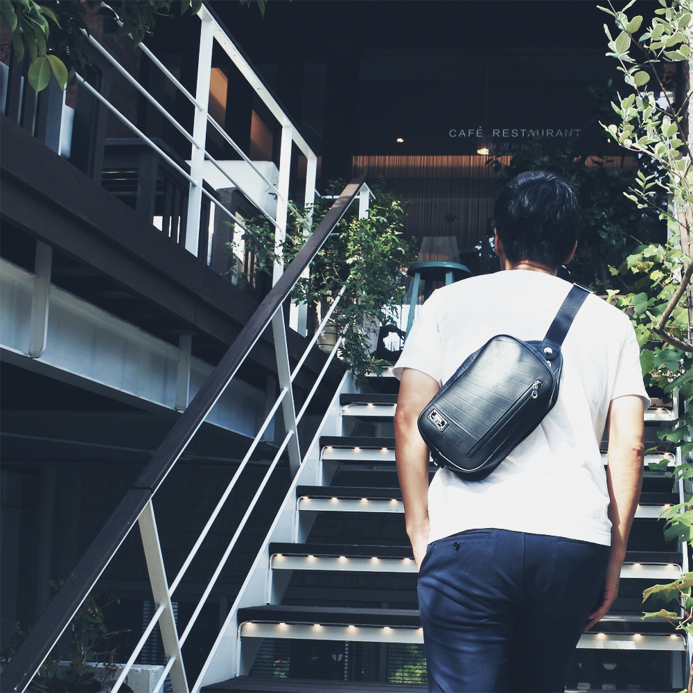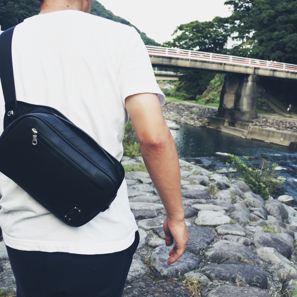 全面止水ファスナーでアウトドアでも安心のボディバッグ