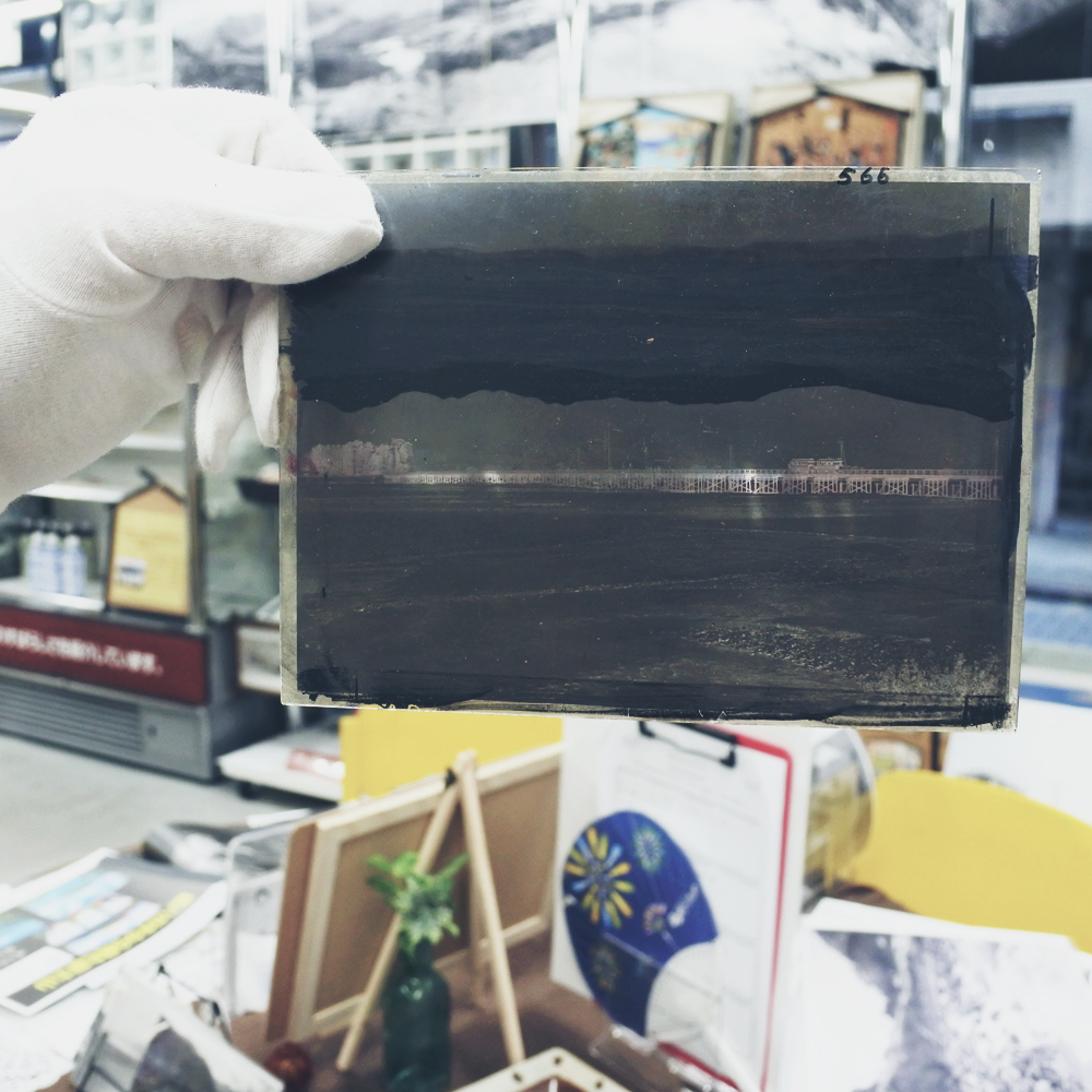 このお店には100以上前の写真のガラス原板が1000枚以上も残っていてその一枚を見せてもらいました。