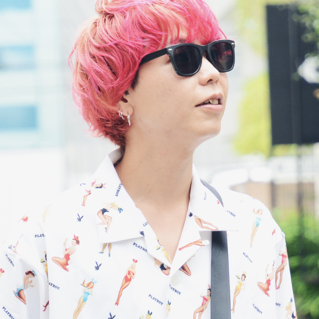 今年のトレンドである柄シャツ×サングラスの組み合わせがおすすめ。