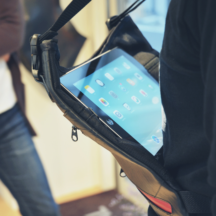 「X-bag」というネーミングはショルダーバッグのファスナーデザインのイメージと、鞄に驚きの機能が隠されていることから「未知」という意味を持たせた「X」を鞄の名前に入れたいというところから生まれています。