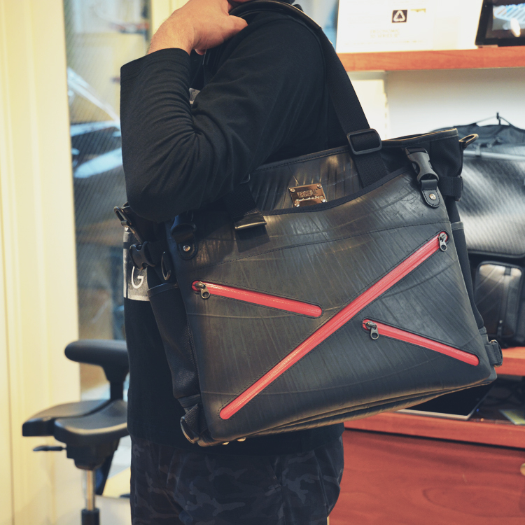 旅番組の撮影などで1~2泊ほどの旅行に行くことが多い田中さんの経験をもとにアイデアを出していき、鞄にあると便利な機能や鞄へのこだわりを詰め込んだ「X-bag」。