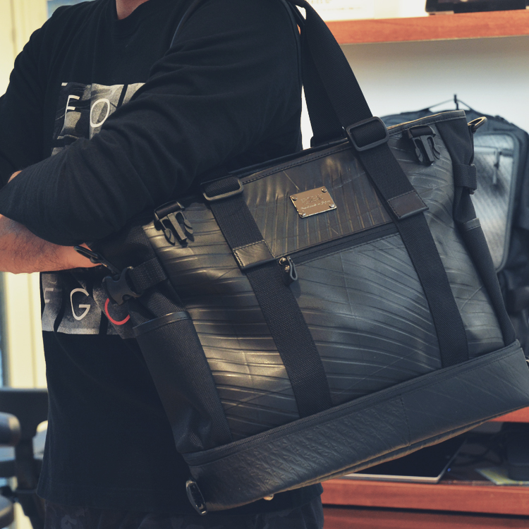 トートバッグは色んなシーンで使用できるようにと黒のワンカラー。