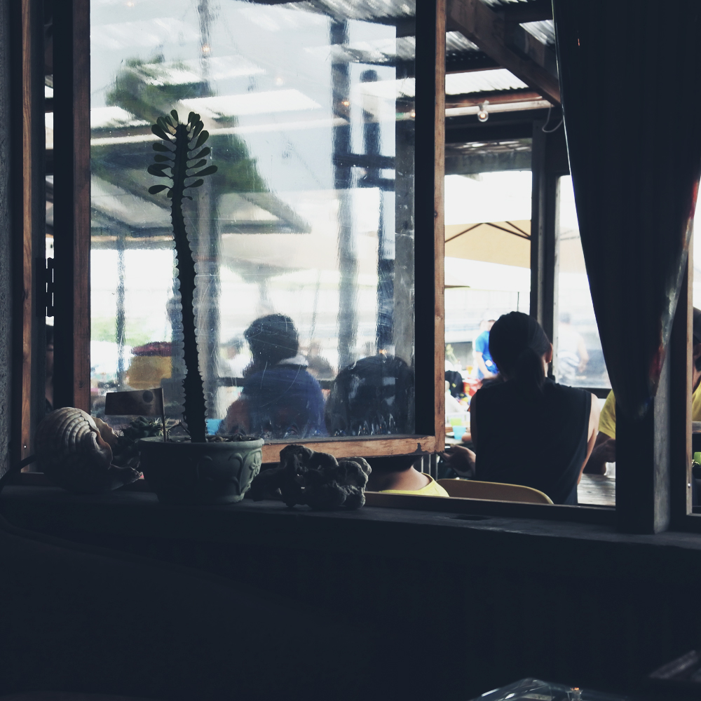 このお店から眺める夕方の海は、どこか海外の海を見ているように感じてしまいました。