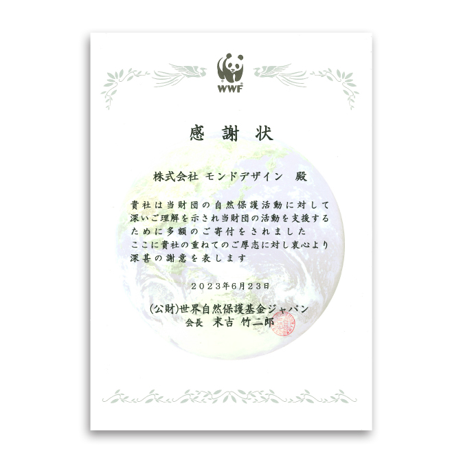 2007年からWWFジャパン(公益財団法人世界自然保護基金ジャパン)にSEAL製品売り上げの1%を寄付しています。