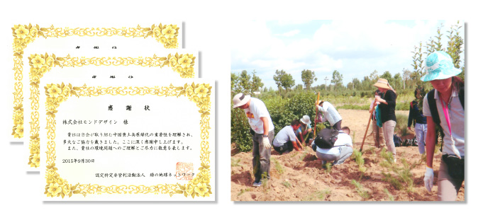 2009年から緑の地球ネットワークを通じて松の苗木を中国山西省の大同に寄付をしています。