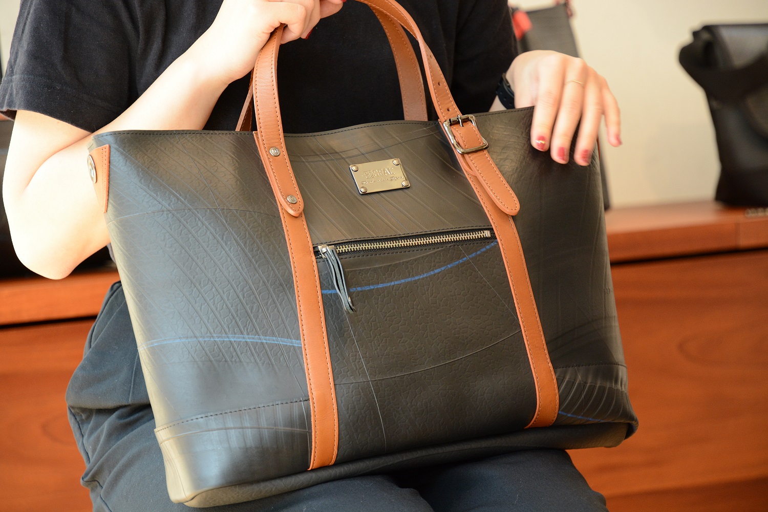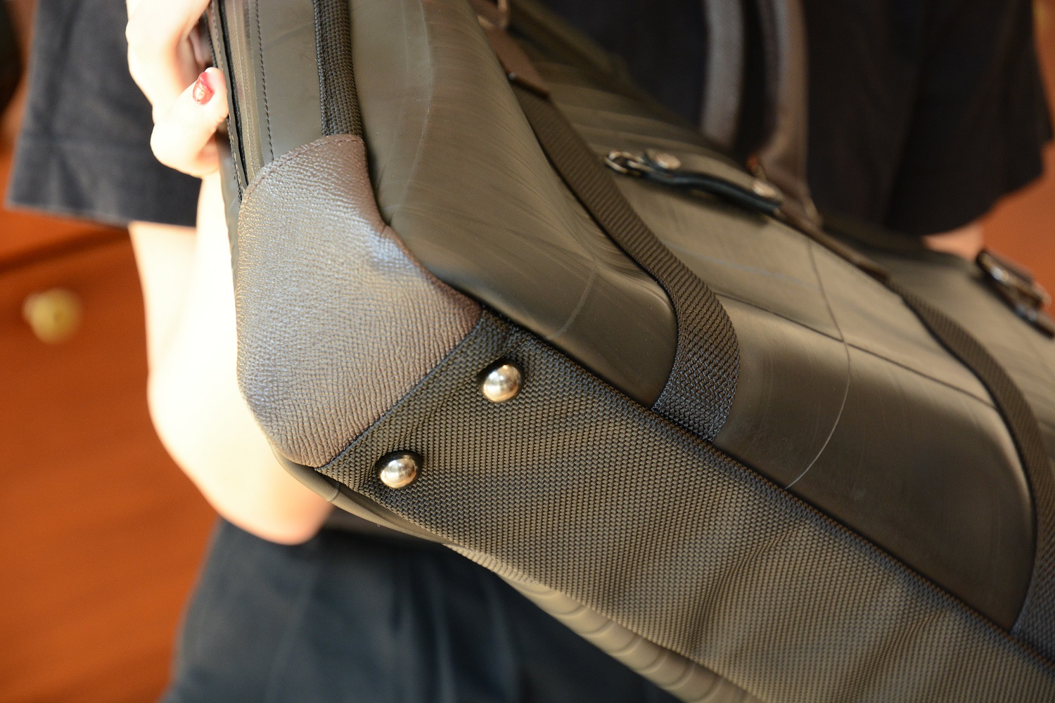 デザイナーズビジネスバッグは底面もタイヤチューブ素材なので、多少の汚れとかを気にせず使えそう。