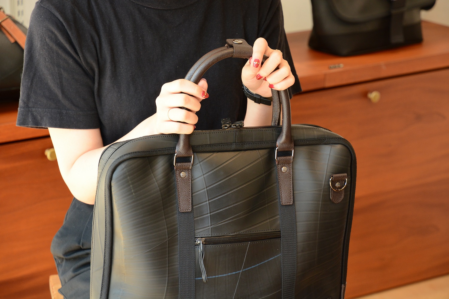 表参道本店販売スタッフN:この『ブリーフケースwaterproof』はシンプルだけど本当に機能性に優れた鞄なので、特にお仕事で外出されることの多い男性の方にぜひおすすめしたいですね。