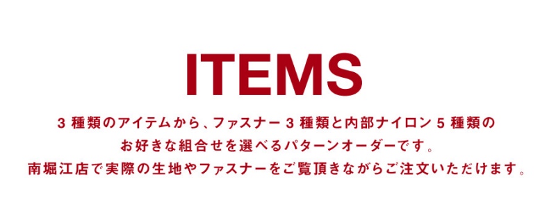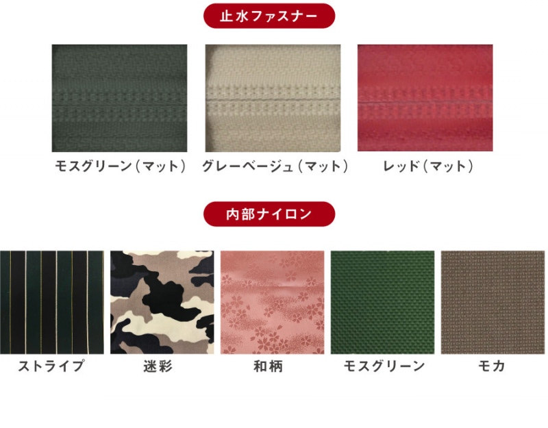 製品の内部のナイロン生地・ファスナーの内容を変更可能。