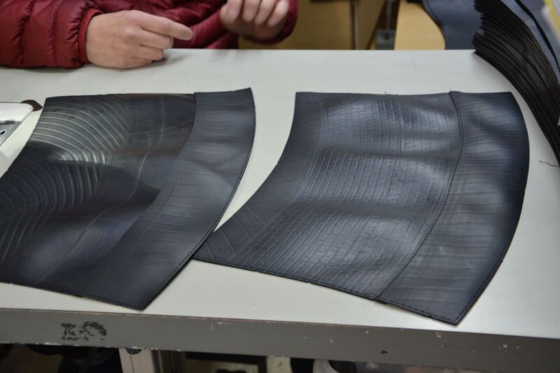 革は一回の型抜きでも問題ないのですが、チューブはこんな感じで波打っています。