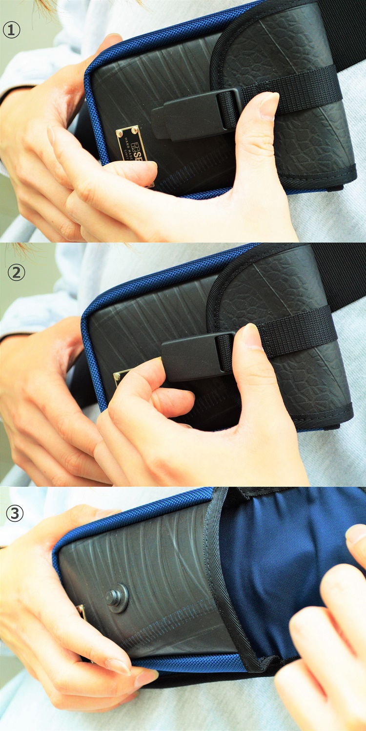 グローブしたままでも開閉可能な小物ポーチはバイクや自転車での移動時などには特に」重宝するのではないでしょうか