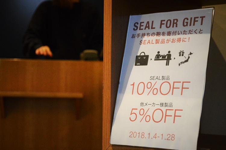 そしてSEALでは1/4~1/28の期間中、店舗に不要になったバッグを寄付頂くとSEAL製品がお得になるというイベントを実施しております。