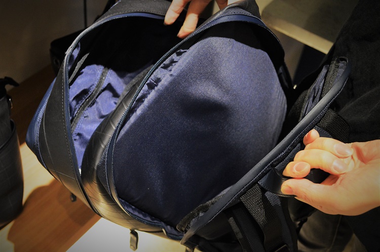PCやタブレットに配慮した緩衝材ポケット、マチも確保された大容量ポケットには書類関係もストレスレス。