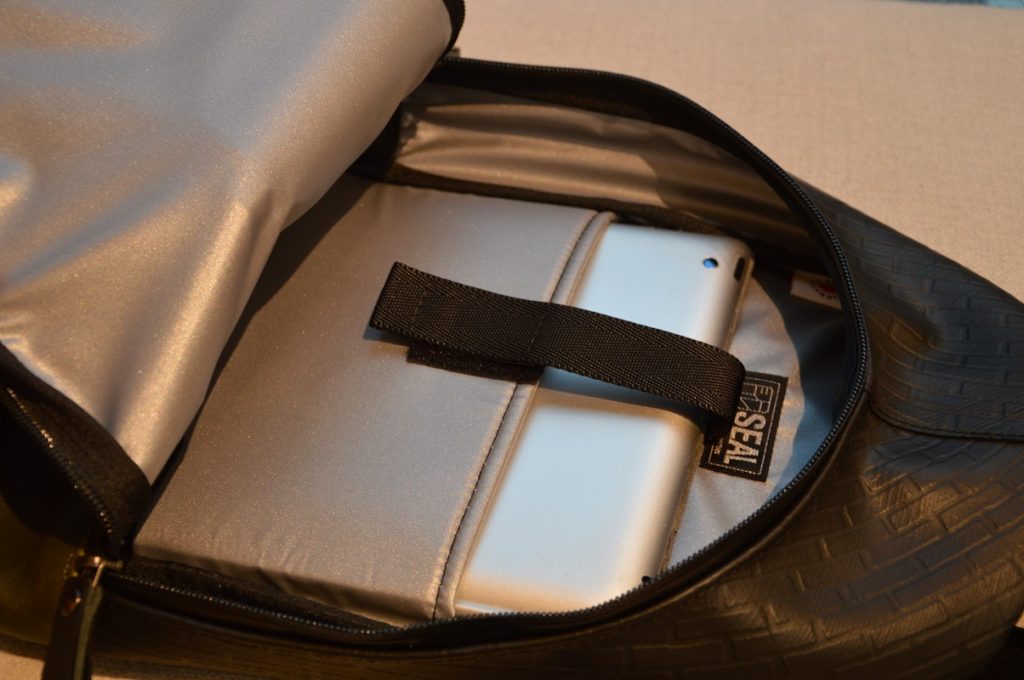 iPadが収納できる緩衝材付きポケットも◎