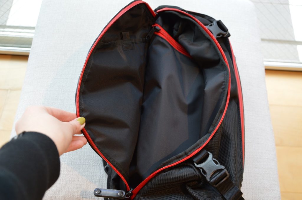 ペン入れやメッシュポケットなども付いていて細かいものの収納も可能。