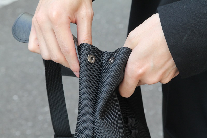 ②サイドの幅はスナップボタンでサイズ調整が可能に。