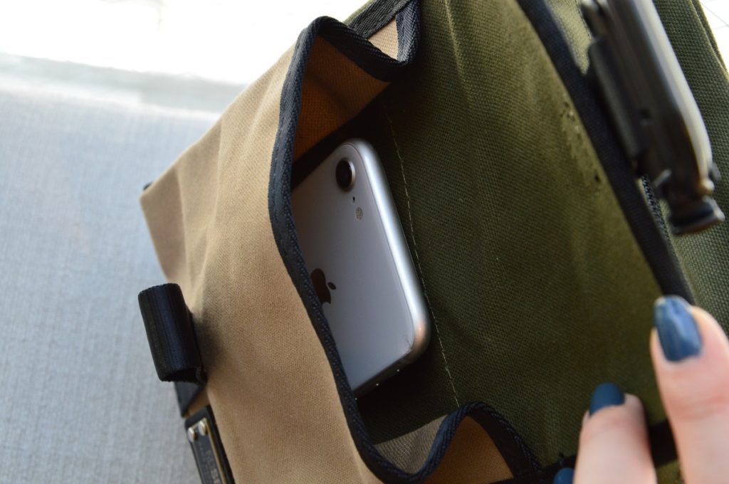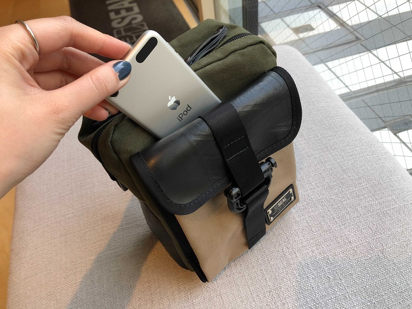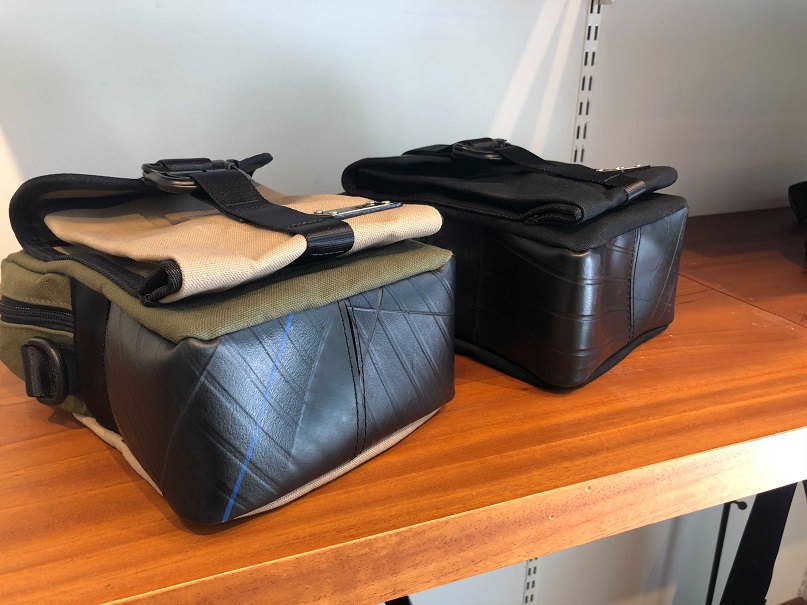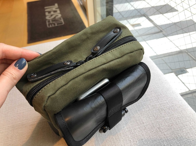 フロントポケットの上蓋部分と底面にはタイヤチューブを使用。