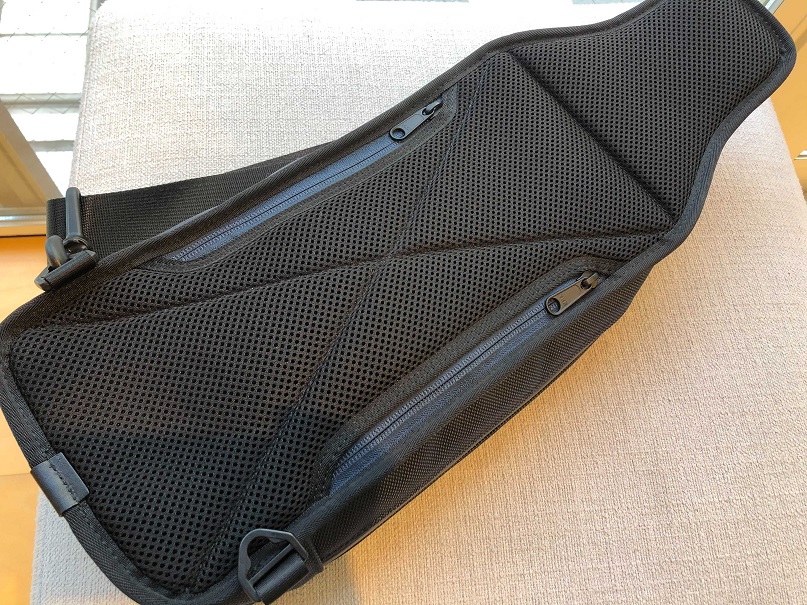背面ポケットは左右どちらの肩掛けの方でもご利用いただけるように両サイドにファスナー付き。