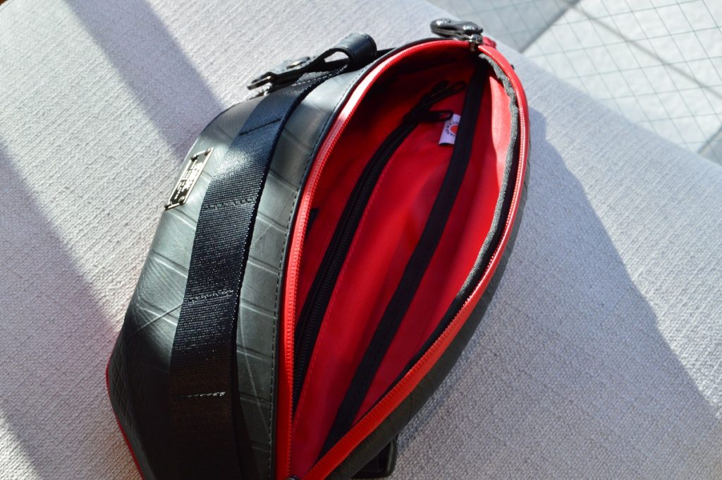 水を弾く止水ファスナーや撥水性の強いナイロンを使用するなど突然の雨にも強いつくりとなっています。