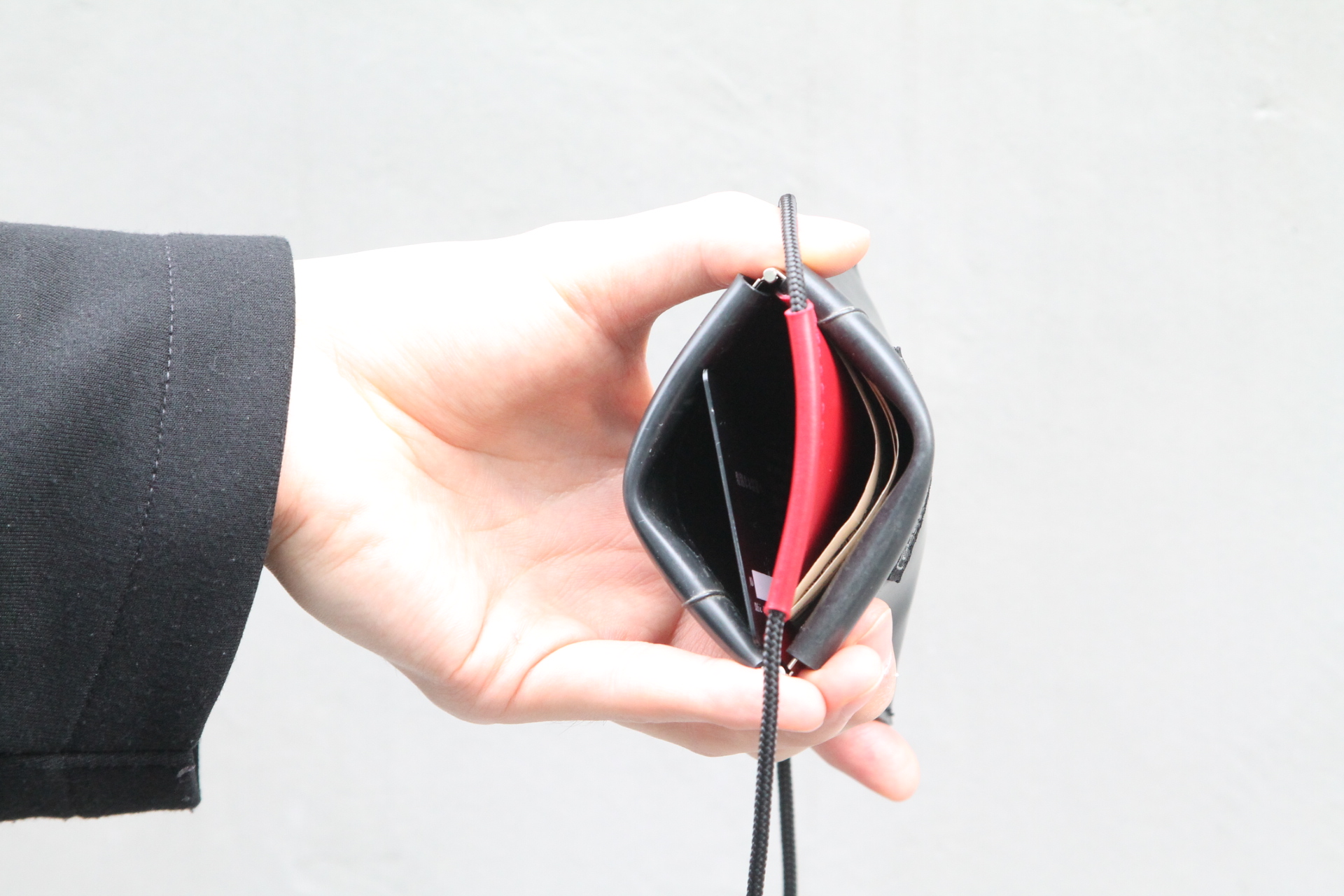 お札に関しては二つ折りにした状態であればスムーズに取り出しが可能です。