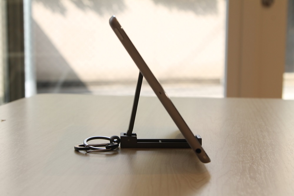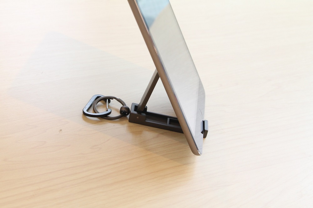 この形のまま、まずはスマートフォン、タブレットを立て掛けるスタンドとして。