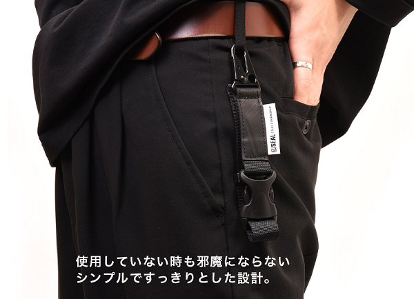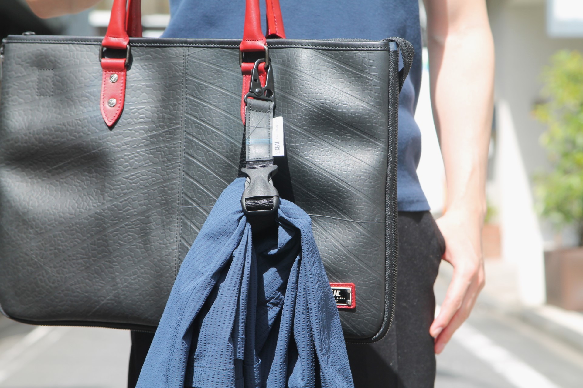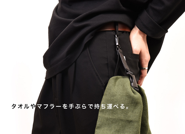 バッグやベルトに接続しジャケットやストールなどを手に持たず、ひとまとめにする事が可能です。
