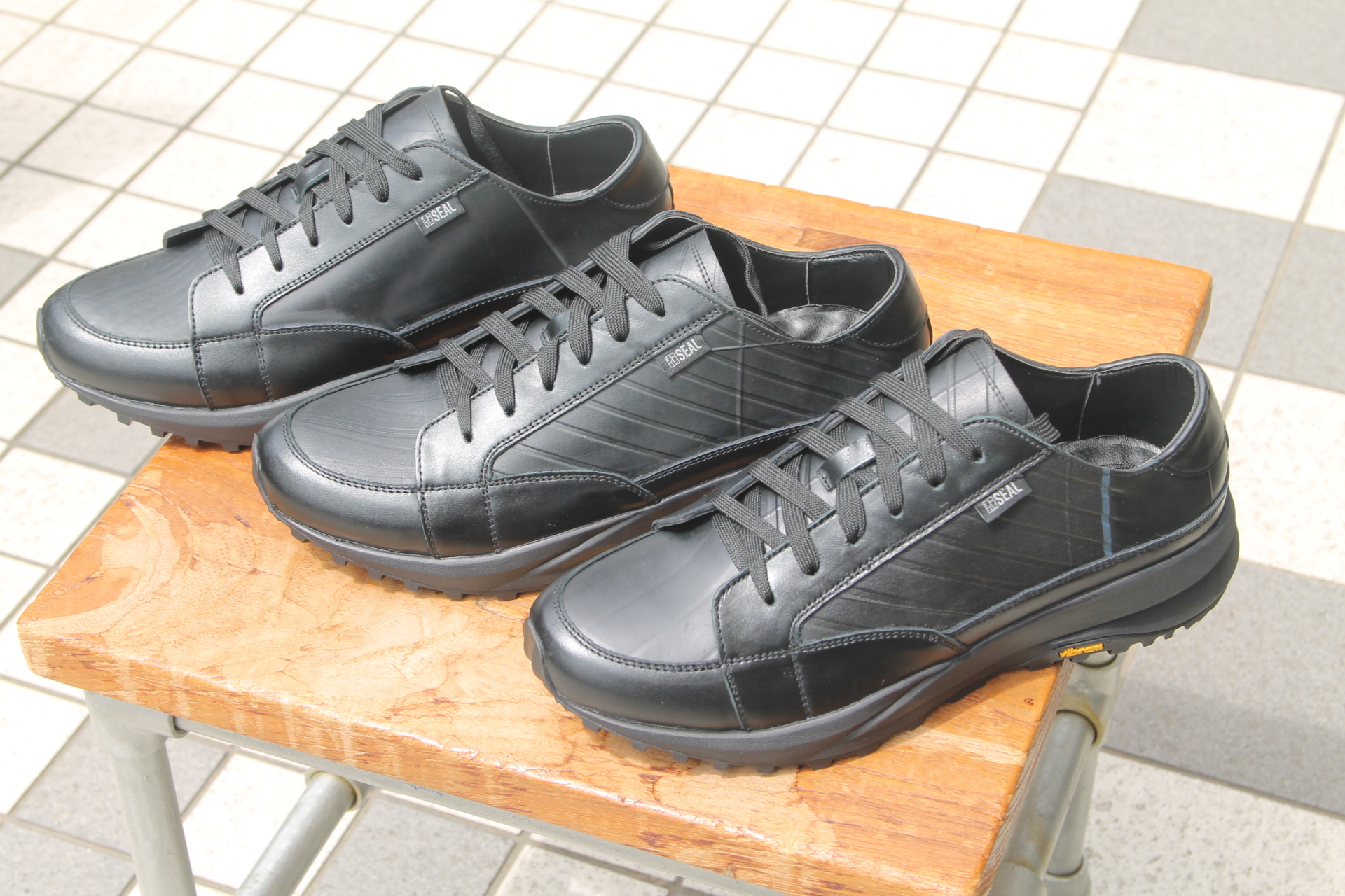 アッパー部分はタイヤチューブを使用し、雨に強い防水性とメンテナンスフリーなスニーカーに仕上がりました。