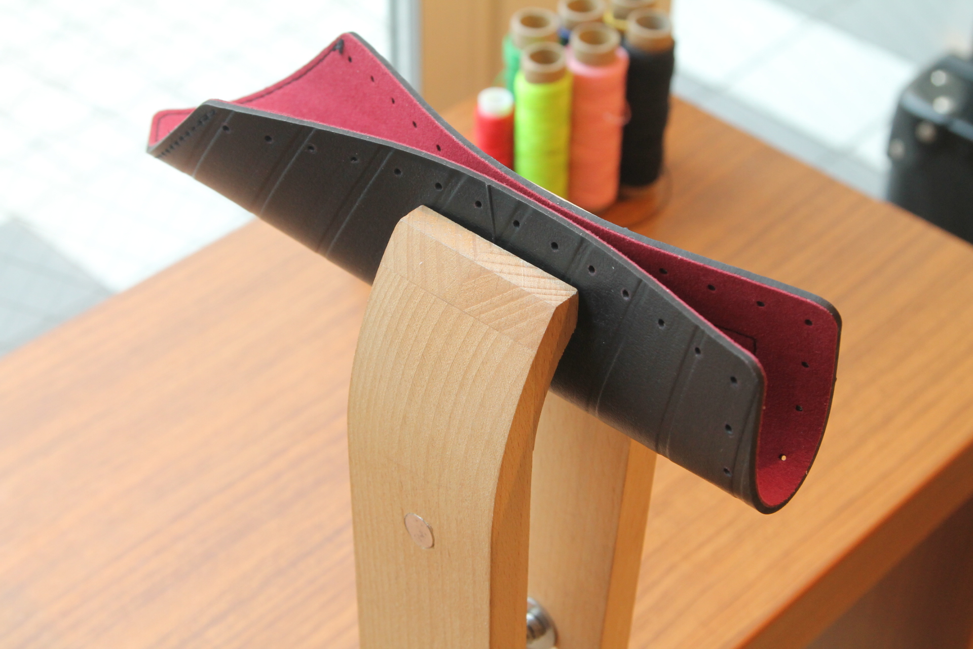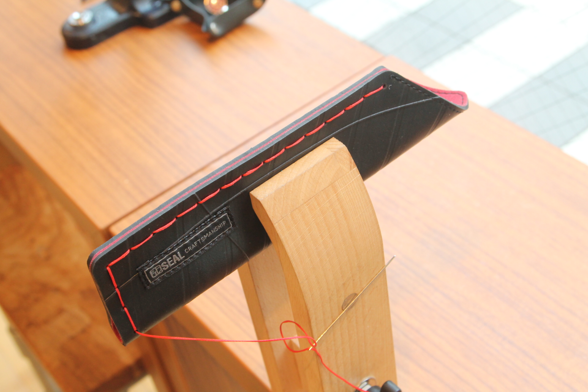縫い終わりましたら、今回のケース上部にはナスカン接合部分がございます。