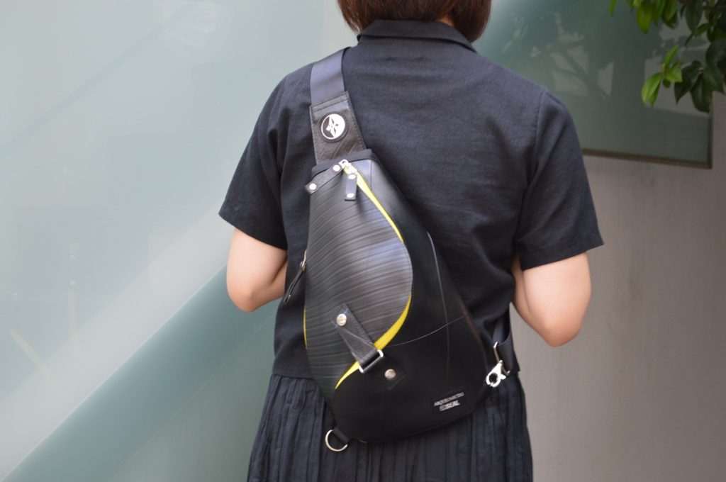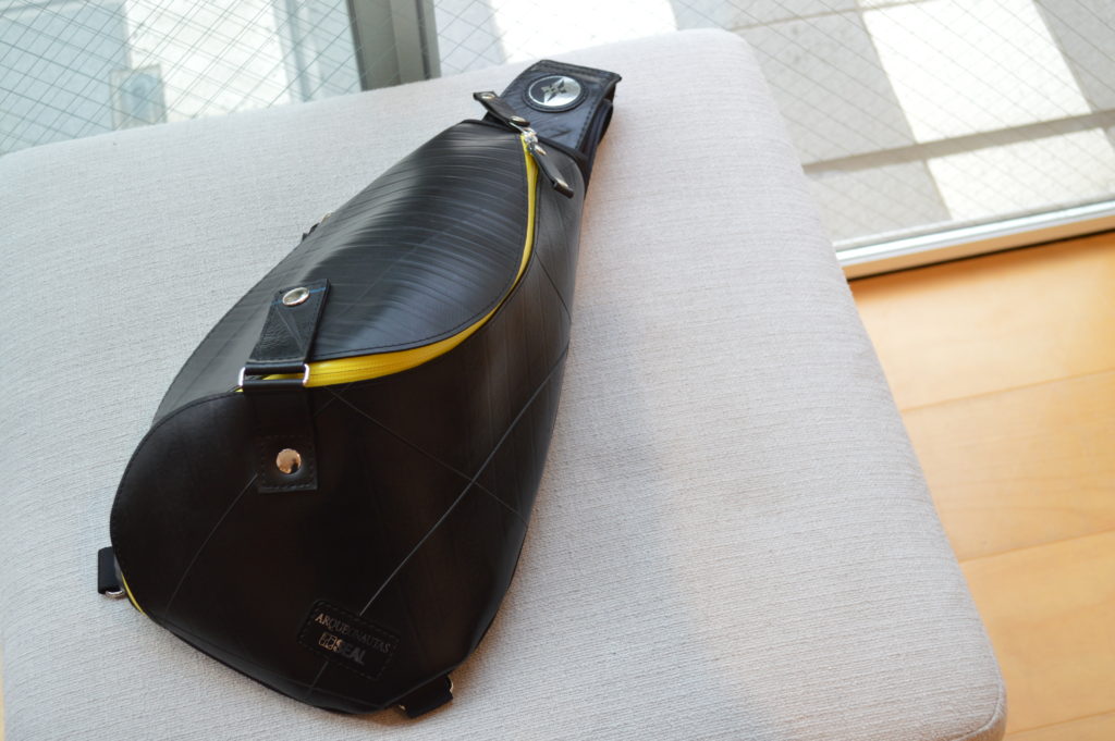 特徴的なデザインとコラボのArqueonautasロゴがかっこいいボディバッグです。