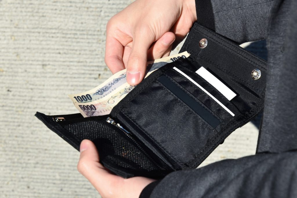 お札入れ、カードポケットが3つに、中身が見えるメッシュファスナーポケット
