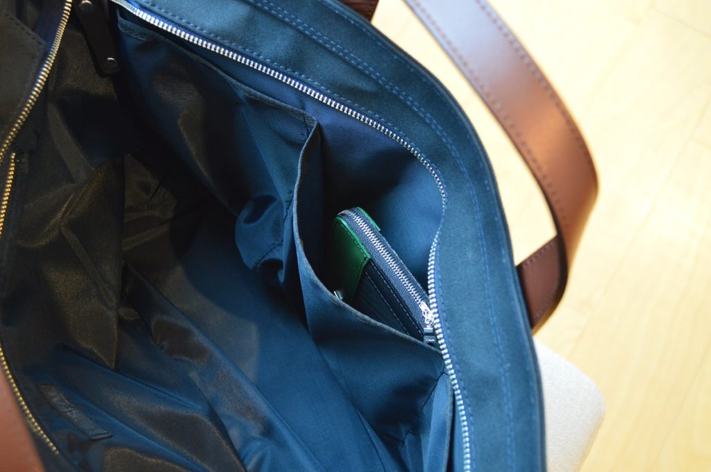 ステッチや内装のネイビーとブラウンレザー、組み合わせがよく合います。