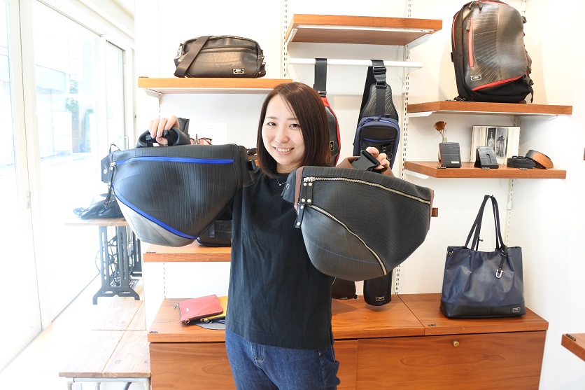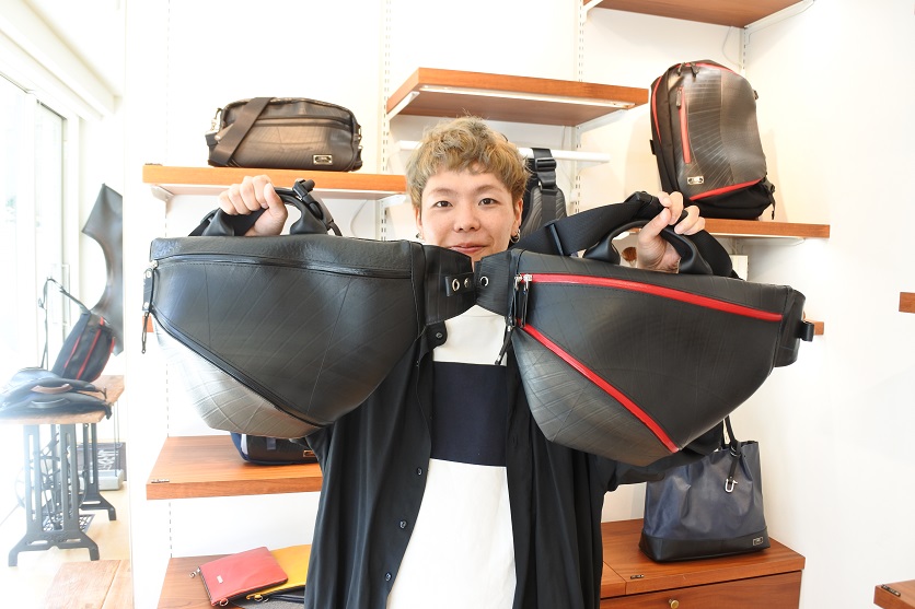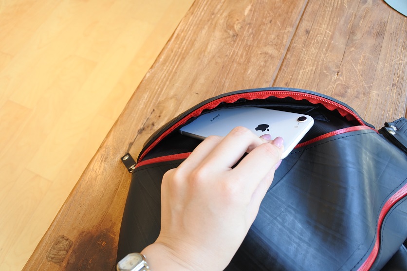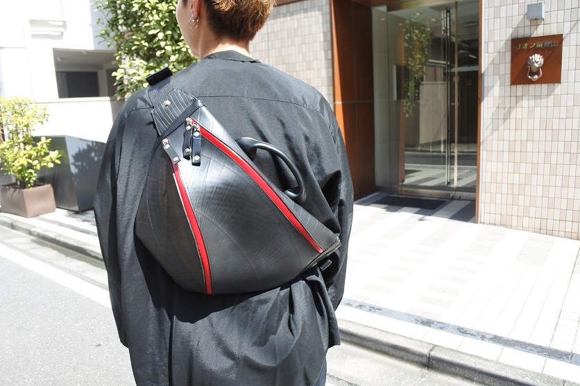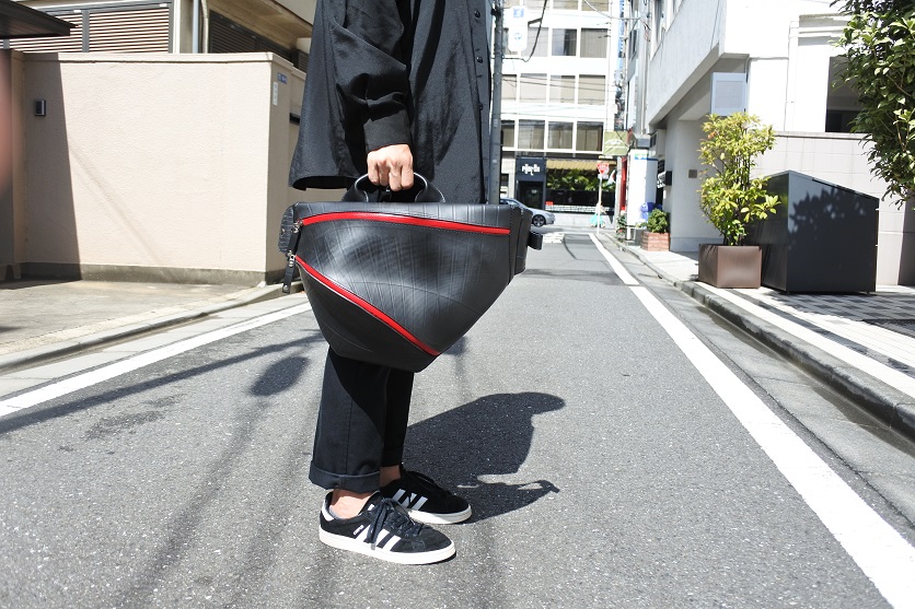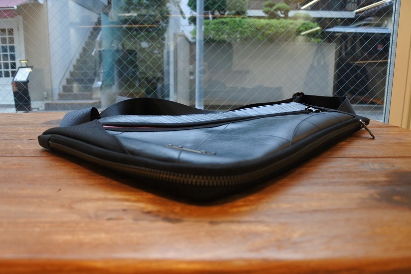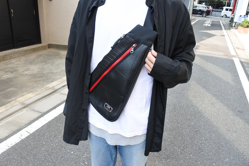 タイヤチューブを前面に多く使っているので遠くから見てもレザーやナイロンとは違った雰囲気を醸し出してくれます。