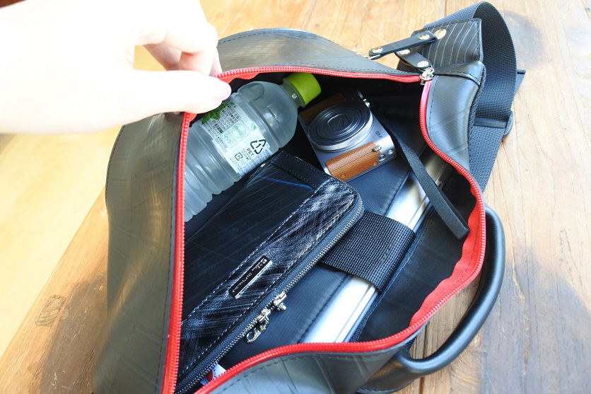 試しにiPad・カメラ・お財布・500㎖ペットボトル・携帯(iPhone8)を入れてみました。