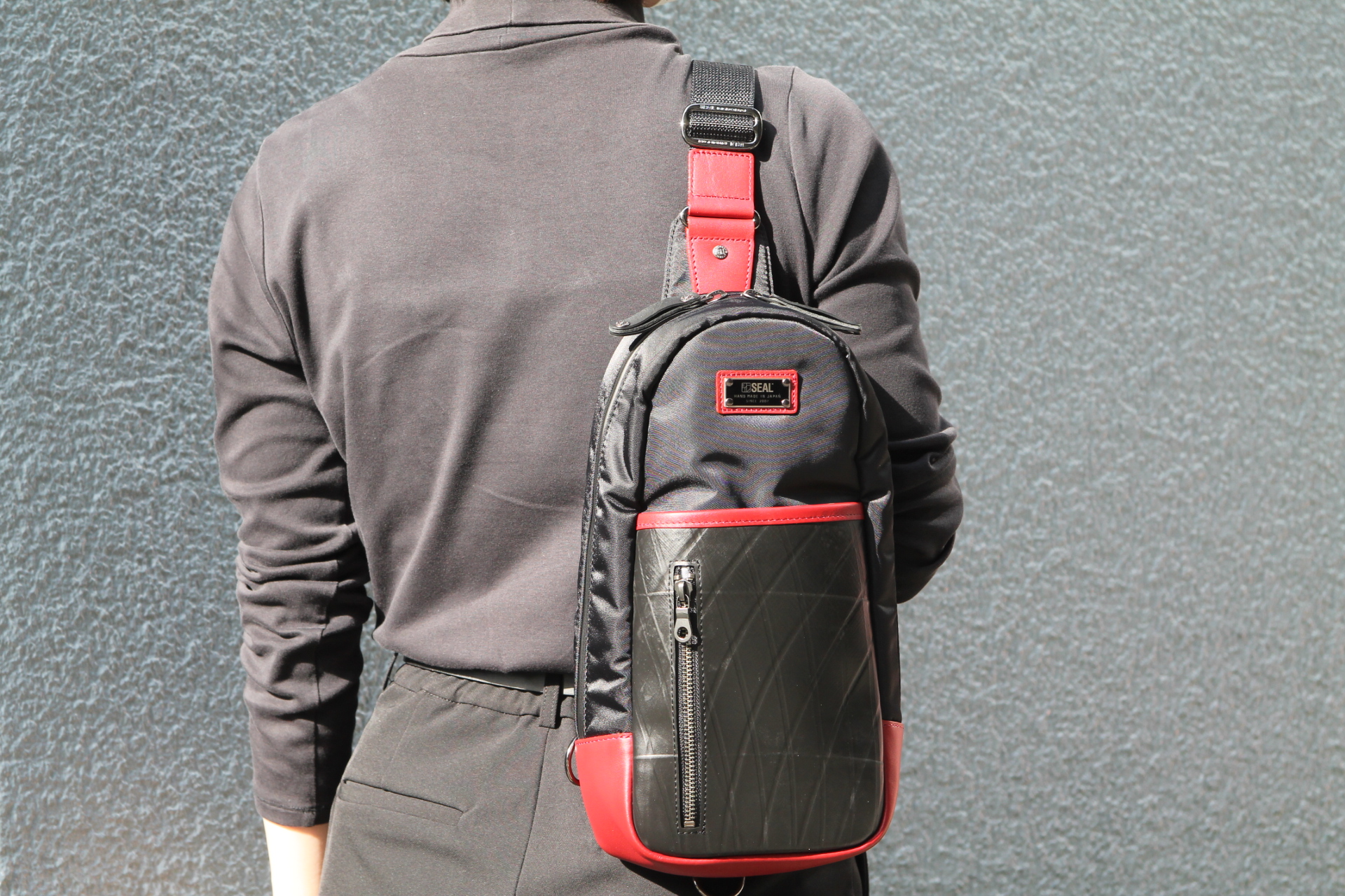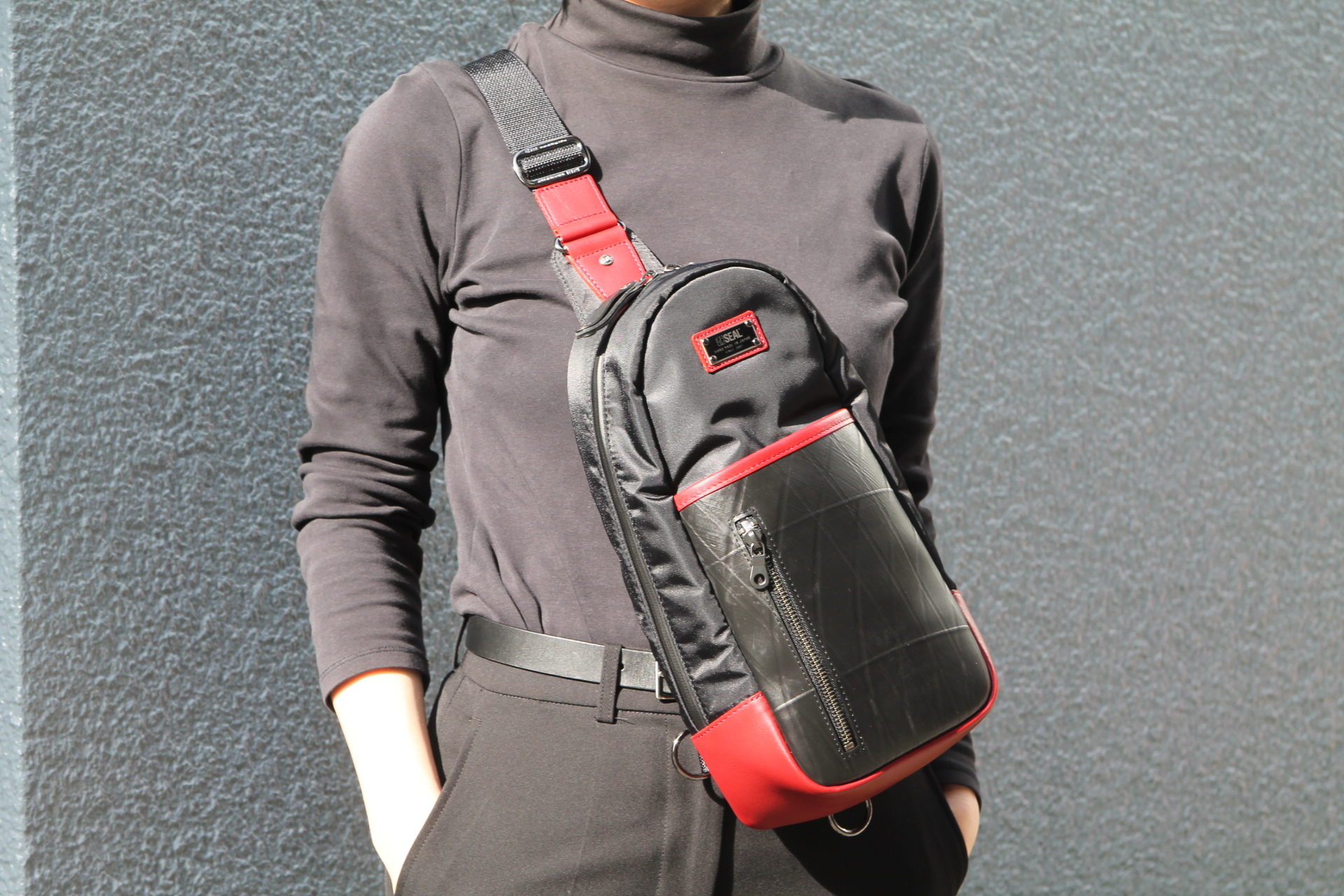新作のボディバッグはBK(ブラック)・RD(レッド)の2色展開。