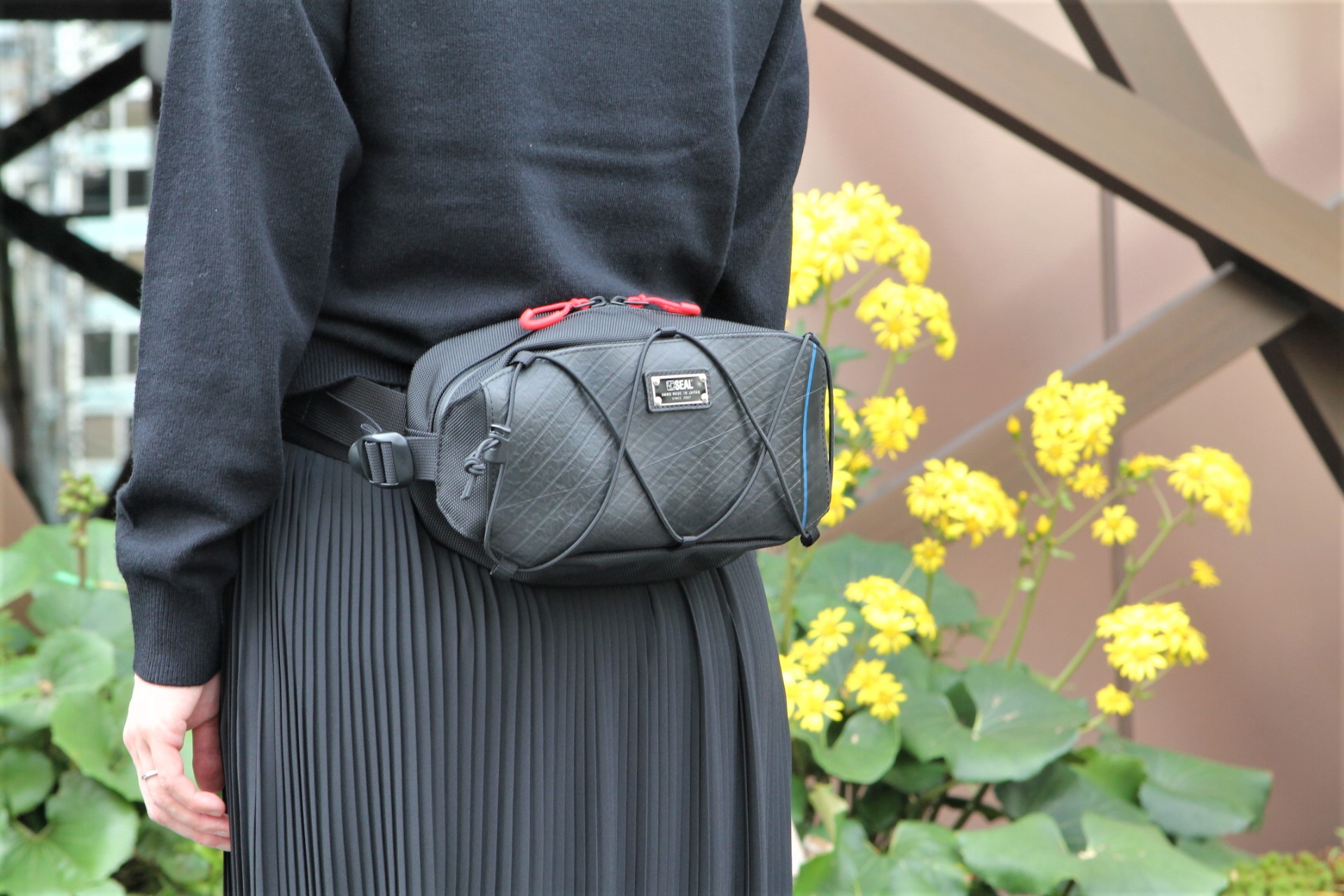 ウエストと斜め掛けと楽しめる、そして小ぶりに見えて大容量。重さ約450gも魅力的。