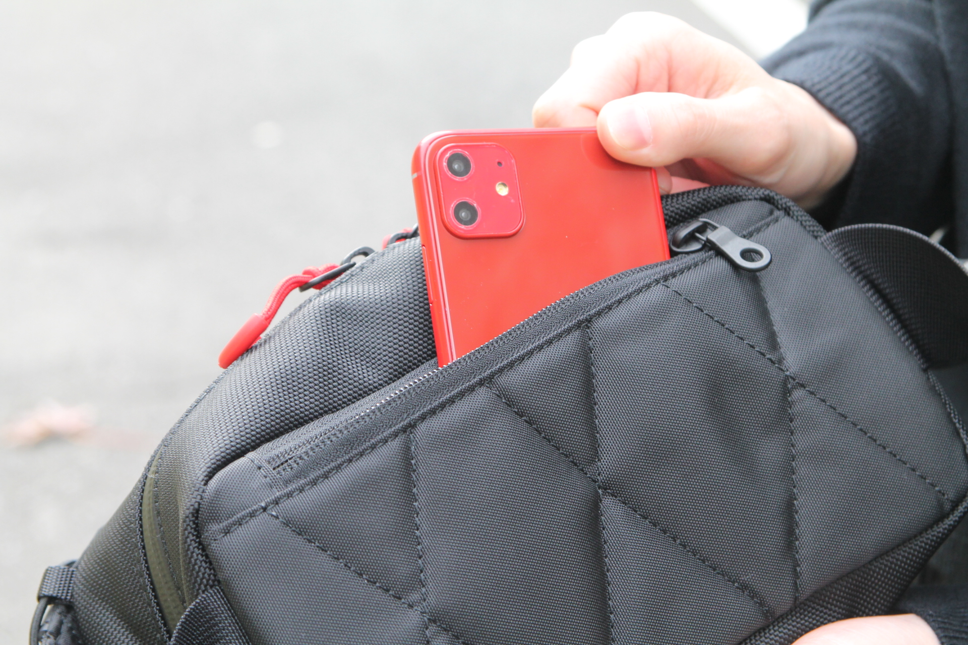 ④正面クイックポケットの内側にマジックテープで開閉するフリーポケット