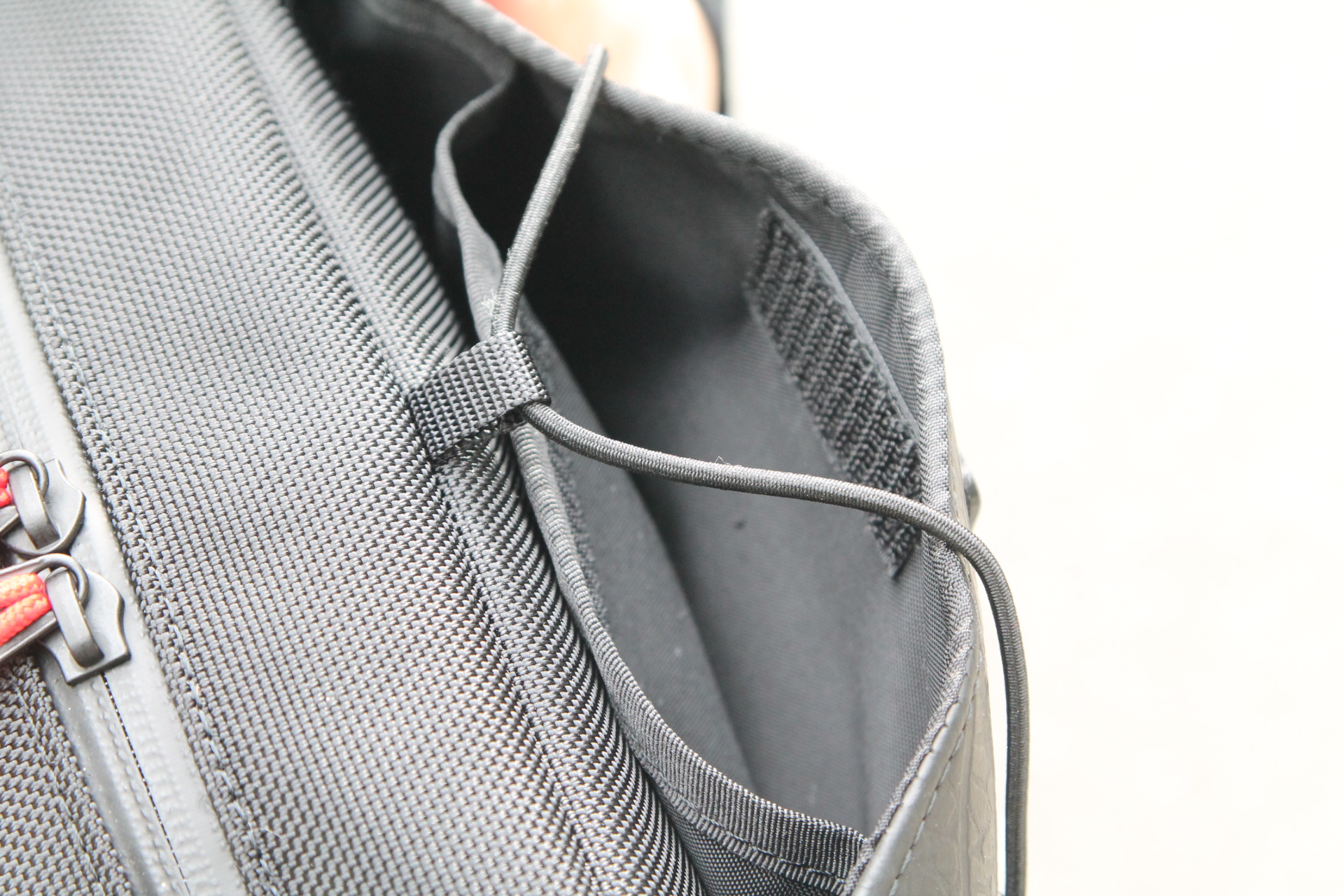 ③正面にグローブや手袋、ハンカチタオル類が挟み込めるクイックポケット収納