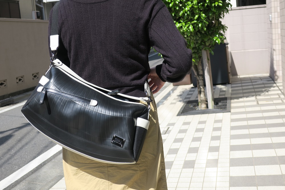 こちらのバッグはタイヤの曲線を描いている部分をそのままバッグのデザインにしています。