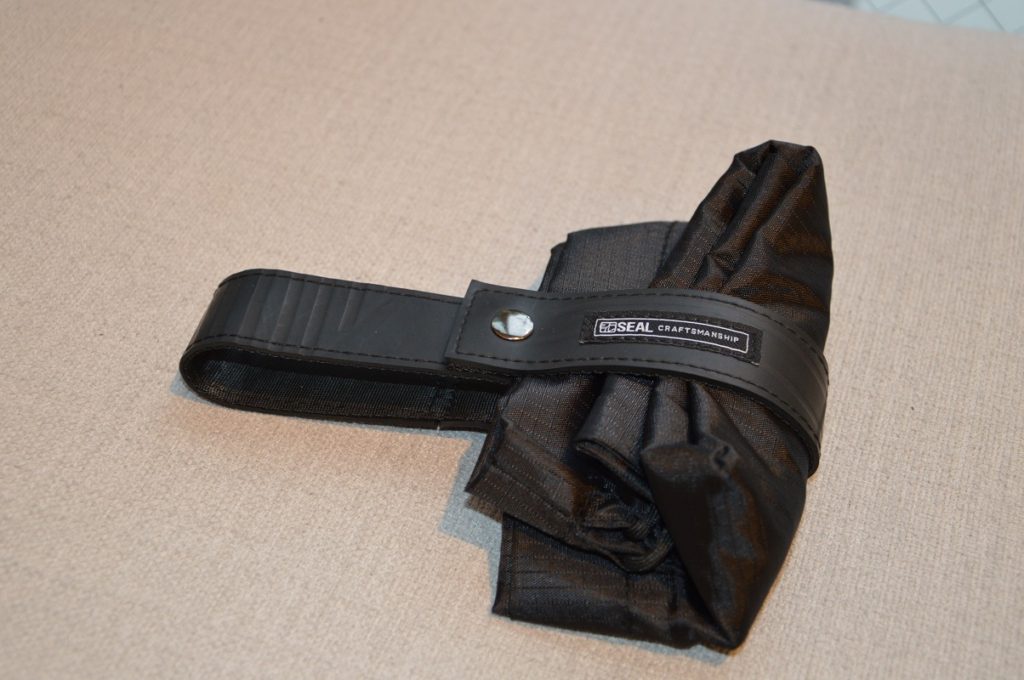 くるっとバンドを巻いてスナップボタンを留めれば、コンパクトにすることが可能!!