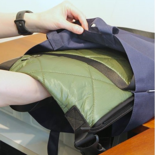 ・ハンドルは折りたたまず、外に出すだけ。こんな持ち運びを可能にしてくれます。