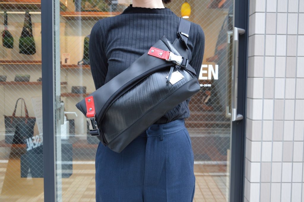 取り出し口が折り畳むタイプで、防水性抜群のウエストバッグです。
