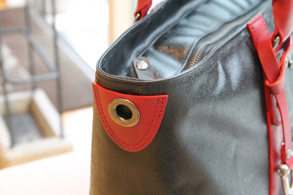 底板、底鋲を付ける事で安定感が増し、バッグが自立しやすいので、持ち運びが楽になります。
