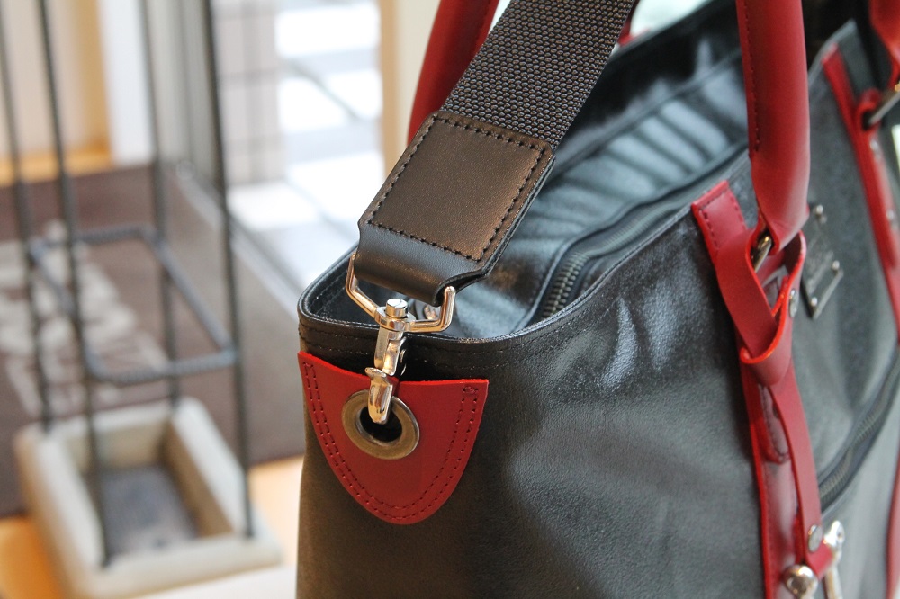 ショルダーベルト接合部分はバッグにしっかりとございますので、ビジネストートを斜め掛けで持ちたい!という方にも対応しております。